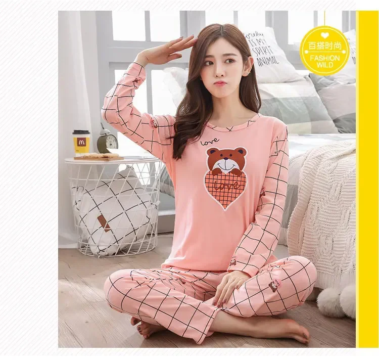 | Name | Pajamas, Homewear, Sets, Elastic, Winter, Summer, Soft, Long-sleeved, Elastic, Simple, Casual, O-neck, Breathable, Elastic Waist, Cartoon Bear, Cute, Blue, Apricot, Pink, Orange, Green, White |